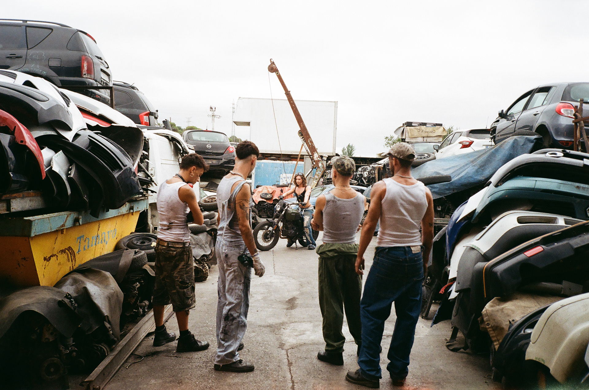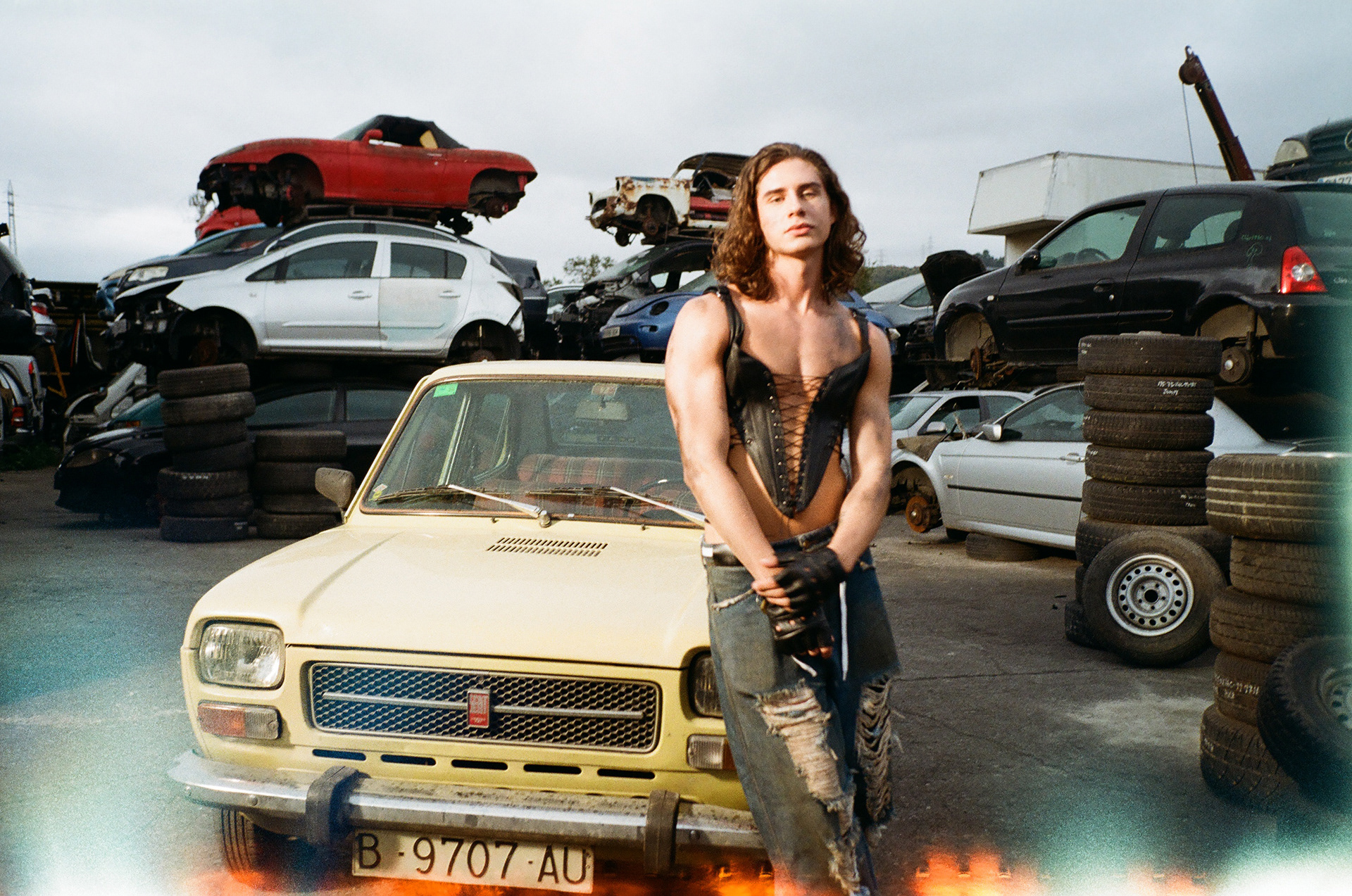 In the bar I’m dressed like a cowboy, but a fetishist leather version of a cowboy. And in the garage I’m wearing baggy jeans that are torn and dirty, but I’m also wearing a corset and a thong. I wanted to put myself in the center of all this hostile macho energy and slowly transform it, so in the end everyone is making out with each other and wearing sluttier clothes.